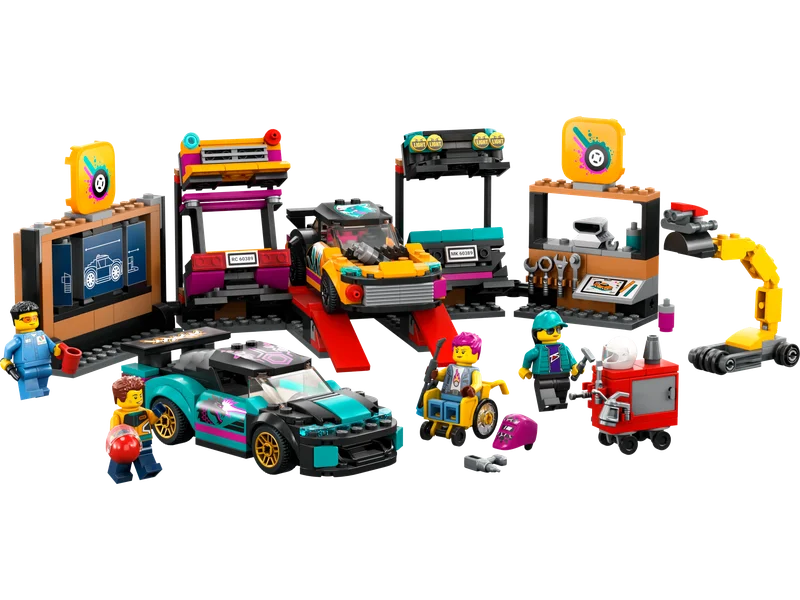 היכנסו לעולם המרגש של מוסך מכוניות מותאמות (60389)! כאן הילדים יכולים ליצור את מכוניות החלומות שלהם עם מגוון אפשרויות התאמה אישית. הסט כולל מוסך עם פונקציות מגניבות ושני רכבים מותאמים אישית, כך שהילדים יכולים לבחור מנועים, פנסים, פגושים וספוילרים שונים. עם דמויות מכונאים ונהגים, כל רגע במשחק הוא חוויה מהנה ומלמדת. אל תפספסו את ההזדמנות להעניק לילדים חוויה של יצירתיות וכיף – הם ייהנו מכל רגע!